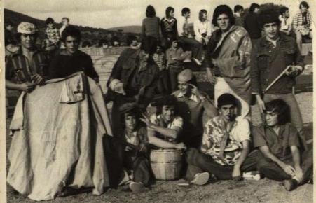 Fernando el del Primo Grande , el que tiene gorro medio balón y de pie, en posición de reclinación, con chaqueta vaquera "el Zorro", osease, Joselito de los Trenado.