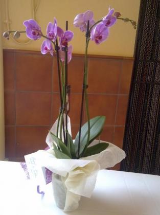 Buenas noches Maria, si que es bonita la orquidea, algo sobre ella también me informé, da flor todo el año, y cuando se caen vuelven a salirle nuevas, ojala y ella tenga esa suerte y le dure muuuuucho....