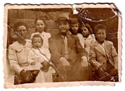 De izquierda a derecha; Sra Elisa con Pepe en brazos Pepita detrás de los papas, el Sr. Pedro, Amadora, Avelina y Pedro