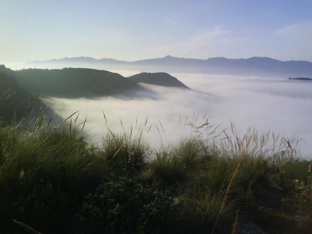 , cerca de Serena, la neblina sube del