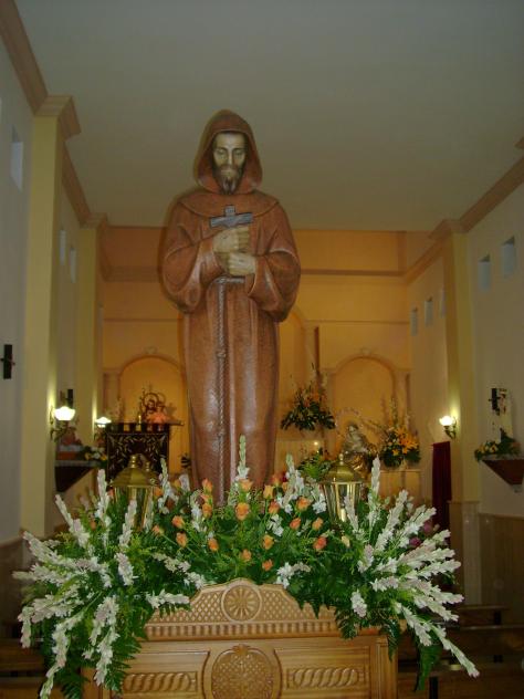en sus andas gracias a la union de algunos vecinos y miembros de la hermandad tras procesionar 5 años en un trono llevado a ruedas