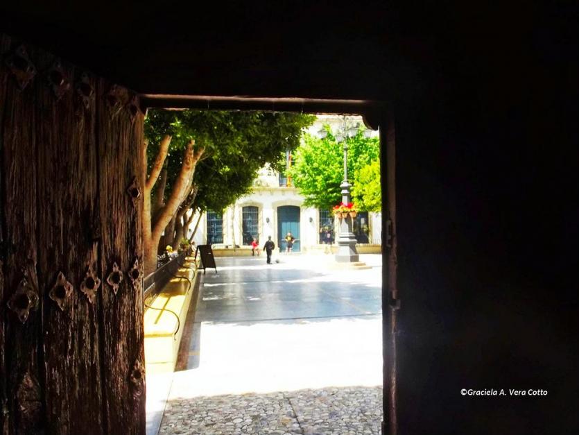 Plaza del Ayuntamiento vista desde el interior de la Iglesia Parroquial,