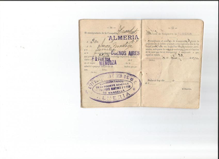 el emigrante se embarcó aquí en Almeria, el precio fue de 32`50pts.