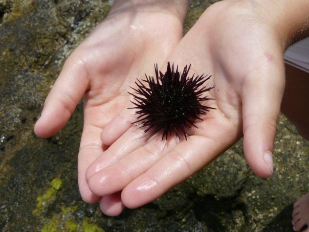 Erizo en mano infantil,