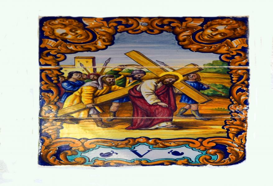 Quinta estación del Vía Cricis, en cerámica en el patio de la Ermita,