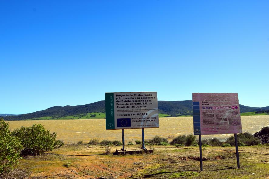 Carteles informativos desde la Presa del Barbate,