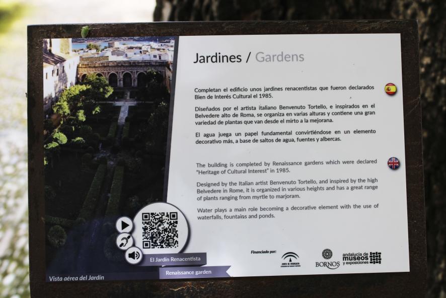 Cartel informativo de los jardines renacentistas del palacio de los Enríquez de Rivera, BORNOS