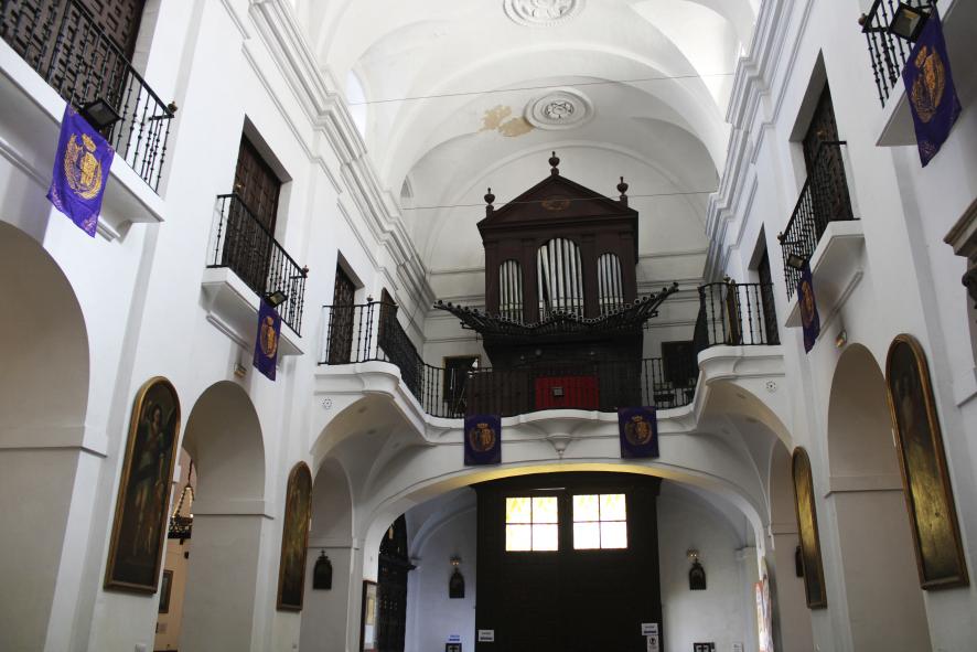 retablo mayor realizado en madera policromada imitando mármoles, es obra neoclásica del arquitecto Manuel García del Álamo (1813-1888). Se admira la bella