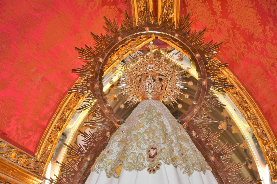 Justo detrás de la imagen de la Virgen de Regla. En el Camerín,