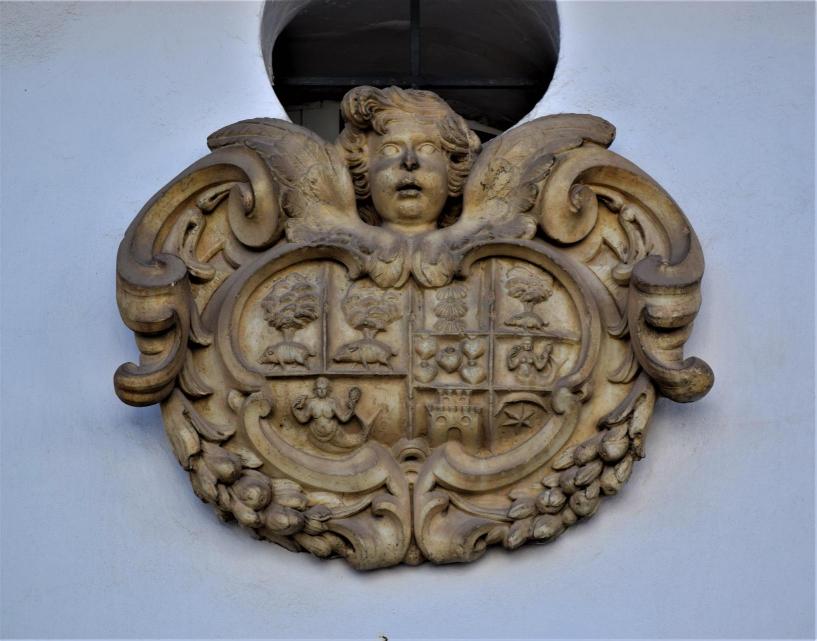 Sobre la puerta de un edificio de la Plaza de Colón,