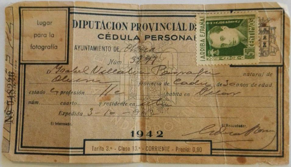 Cédula personal de Isabel Villalba,