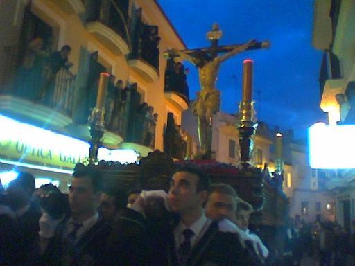 Tengo 2 hijos que viven la semana santa muchisimo, y con el cristo de la buena muerte se dislocan, se visten de penitente del cristo 2 meses anteen mi casa todos los dias. Impresionante la procesión del Cristo del pasado octubre, con motivo del cincuentenario de su primera salida procesional. El trono que estrenaba un calado, con un color oscuro parecido al caoba, ha quedado precioso... Que seriedad, y con esos lirios . Aún sigo sin palabras ... Y que banda de cornetas y tambores le acompaño durante todo el recorrido ... Sinceramnente muchas gracias a todos los que han podido hacer posible esta procesión! Soy sanrokeña pero vivo en madrid un saludo p'ara mi tierra querida y a todos los sanroqueños. Pocas imagenes tienen la belleza y la serenidad que esta talla posee.Capaz de hacer enmudecer a todo un pueblo a su paso, el Cristo de la Buena Muerte es el orgullo de los sanroqueños que año tras año se echa a la calle para verlo procesionar.Fuente de inspiracion, belleza y fervor popular. Por siempre, NUESTRO CRISTO.EL MAS SANROQUEñO.Una costalera. Mi abuelo fue el modelo que tomó Ortega Bru para tallar las piernas del Cristo de la Buena Muerte.