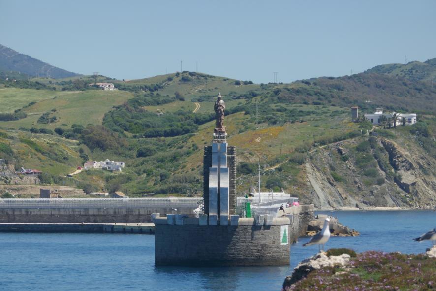 Una imagen domina la bocana del puerto,