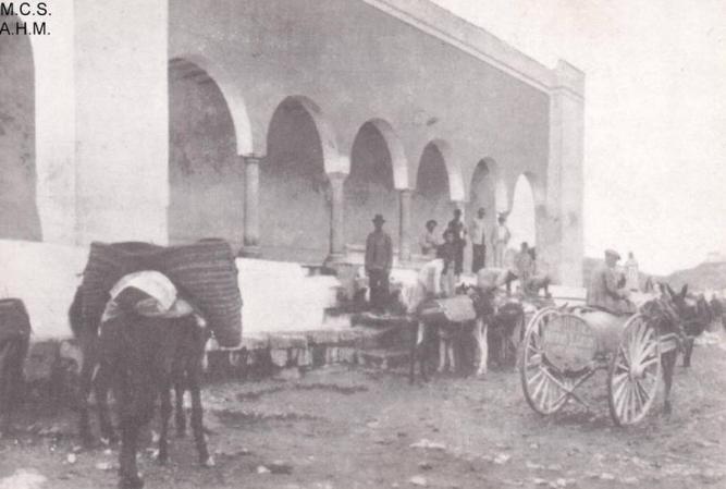Esta fotografia, realizada en los primeros años del siglo XX, se puede apreciar que en aquella epoca, el movimiento cotidiano de esta fuente, que es uno de los lugares más emblematicos de Baena. En la instantanea se puede apreciar el trasiego de los vecinos que acudian a por agua tanto para abastecer su consumo como tambien para poder solventar las necesidades de la industrias de esta población.