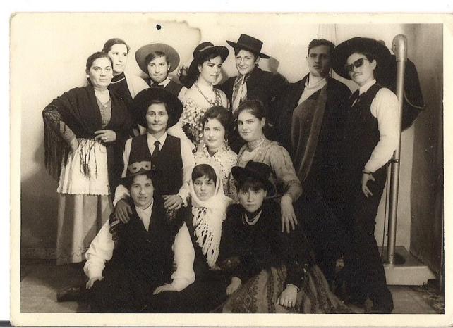 Esta foto es de una fiesta de disfraces que se hizo en Conquista (no es del carnaval), aunque no recuerdeo si coincidió, creo que fue en el famoso teleclub. De pie de izquierda a derecha están: la hermana de Antonio que no recuerdo como se llama (Mª Jesus como son de tu barrio tu podrás decirnolo), después Ramona, Hilaria, La del guarda rural, Tolo (del aguacil), Gafitas, la otra hermana de Antonio. Agachadas: Josefa, la mujer de Gafitas, Agustina, la de los Manolitos (no sé su nombre), mi hermana...