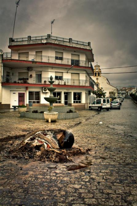 La candela de los quintos estaba ardiendo ayer a las tres y media de la tarde hora en la que nos marchabamos del pueblo mi hermano, mi hijo y yo; y ya es todo un merito, pues hay que ver lo que ha llovido. Subiré alguna foto para quien no haya estado que veais como corrian los arroyos y el rio de Conquista. Lo que es en mi caso particular hacia casi cuarenta años que yo no veía el arroyo de los Cortijos o el rio correr de esa manera, y como nunca llueve a gusto de todos, lo que ha fastidiado por... Claro que son los restos de la candela de los quintos, que fue difícil su encendido debido a la humedad del tiempo, la cual estuvo casi 3 días ardiendo. Yo la ví el día 25, y seguían los leños quemándose. Si no hubiera sido por el mal tiempo, hubiera sido una gran candela.