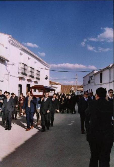 Colgué esta foto hace bastantes días pero el servicio de agregar datos y fotos va lentito por la mucha gente que quiere colgar fotos de sus pueblos; la colgué para que se acercaban las fechas de la Semana Santa y para ir abriendo boca recordando lo que el Viernes Santo volveremos a vivir, claro está con quintos nuevos. Bueno pues quería mandar mucha suerte para todos esos quintos de este año que seguro que están algo nerviosillos por cómo va a salir todo pero sobretodo con la gran noche que es como...