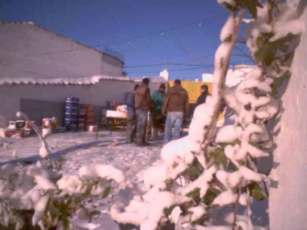 El 28 de febrero no fue la matanza. Esta es la matanza en casa de amelia.el 28-2-06. Alguno tuvimos que salir con cadenas. Menos mal que un amigo me dejo las cadenas, sino me tengo que quedar ahi, a mi no me hubiera importado, si ya esa aldea disfruta de un entorno sin igual, la novedad de la nieve la hizo incomparable. El problema era bajar al Bar de Amelia por los resbalones, pero agarraitos a la pared bajamos a hechar la partida y a tomarnos unas copitas y a disfrutar de jugosa tertulia. Yo tuve el privilegio de ver ese peazo de nevazo.