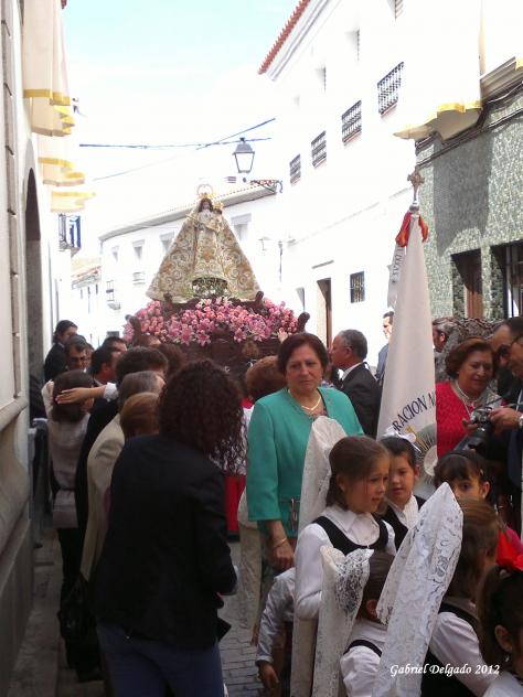 ¿Has visto Rafi? ¡Qué niñas más bonitas! Que guapas las niñas con sus mantillas. Carmen me alegro muchísimo de que haya gente que recuerde nuestras tradiciones y vistan de esa forma a las colodrillas para nuestros grandes acontecimientos. No obstante a mí también me habían contado que la falda era negra para las personas más mayores. Rectifico, la falda es roja, con unas franjas negra,