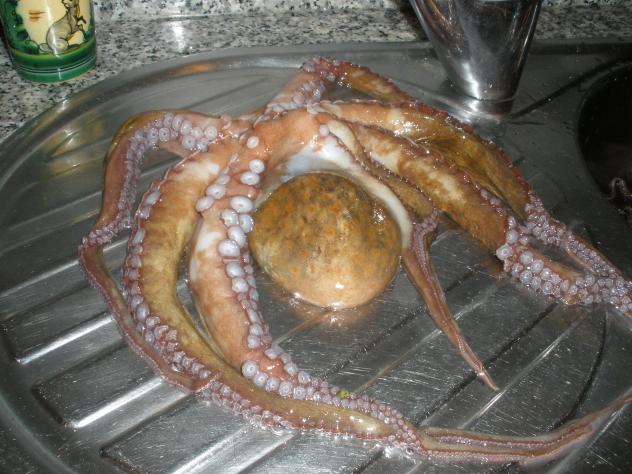 Pulpo a la gallega. Les mando un gran abrazo (Para cada uno de ambos dos) a mis queridos amigos Vicen y Angel, que están en Ogrove degustando pulpo.