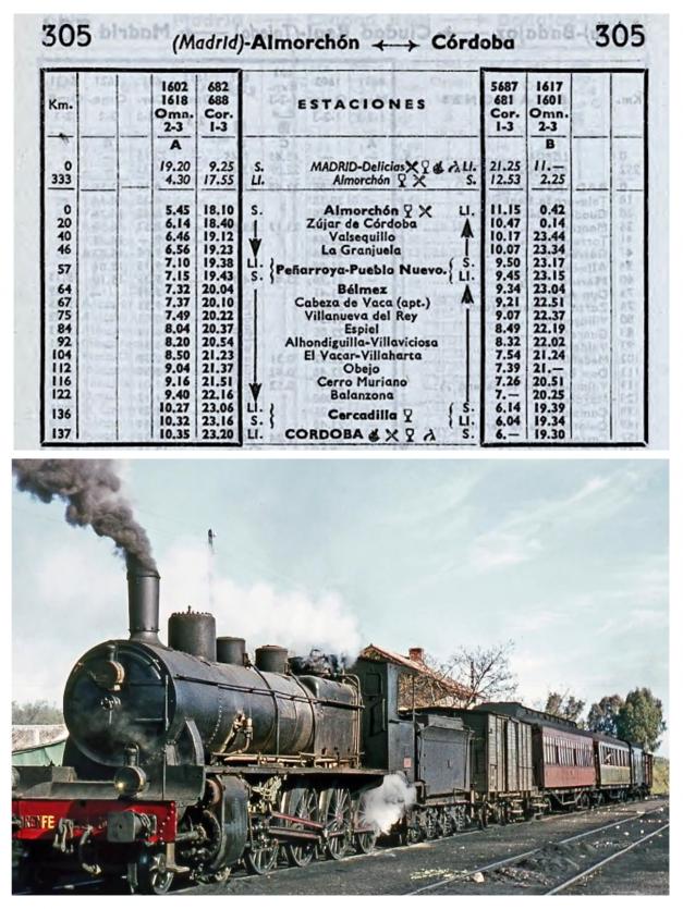 La locomotora titular solía ser una "mastodonte" de la serie 401-450 de Andaluces (RENFE 240-2001-240-2054).