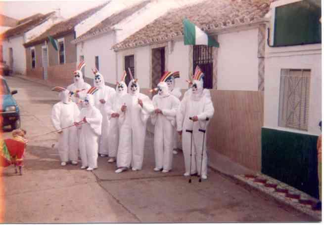 Hola soy de Carretero os escribo para deciros que el otro dia os vi por television la tradicion tan original que teneis en el pueblo pillo harina hasta el apuntaor perdon el camara un saludo a todos los Cordobeses. Hola soy nieta de ana reyes nacio aqui en ochavillos y mi madre en carretero un beso para todo el pueblo creo que aun quedaran primos de mi madre yo estoy en bilbao.BONITO PUEBLO. Los curros, uno de los mejores disfraces de la chirigota de Ochavillo. En la foto sale la casa de la sole. En qué año fue esta foto, esta supongo que no ya que la murga iba de viejos.