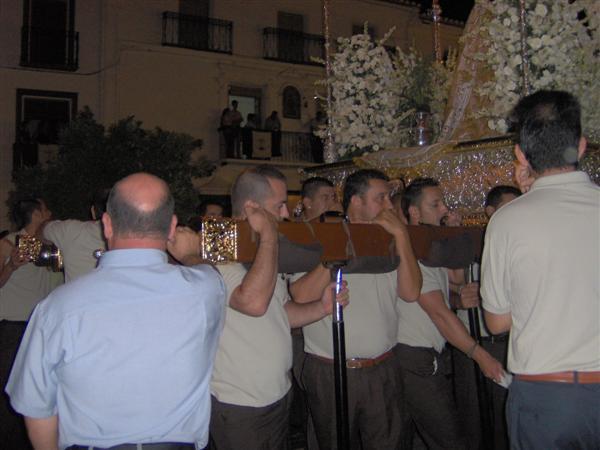 Descansando para el ultimo tramo los costaleros,