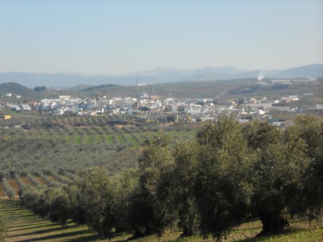 palenciana al fondo rodeada de olivos,