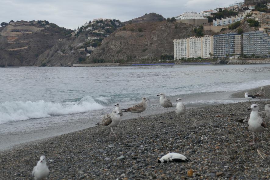 Las gaviotas las únicas en la playa en invierno,