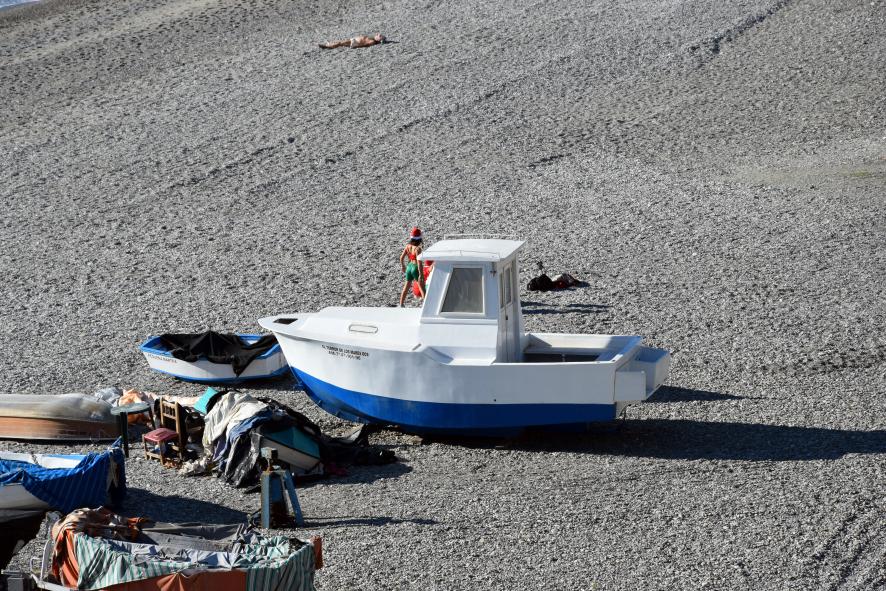 Las redes y los botes barados esperando,