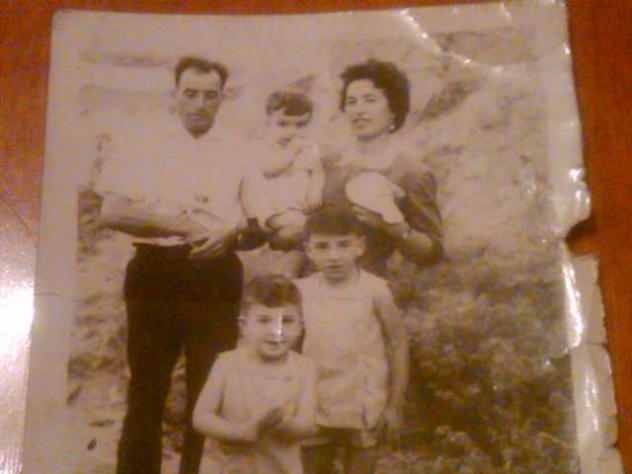 foto es con mis padres y dos de mis hermanos. Mis padres se llaman Antonio el Licho y Rosa la Pringue. Mis hermanos se llaman Jose Antonio y Gabriel Felix y el que esta en brazos de mi madre soy yo Angel, uno meses antes de venirnos a vivir a Elche.