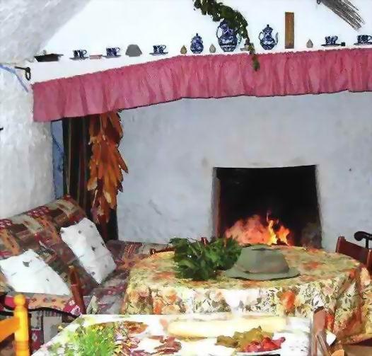 Corresponde a una parte del comedor de una cueva dedicada a Turismo Rural. Está el fuego encendido y Alguien ha preparado un delicioso aperitivo para cuando vuelvan de darse un paseo por un camino arcilloso los demás compañeros.