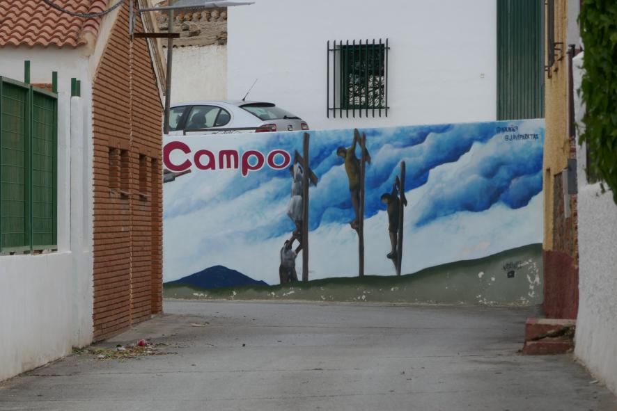 El Calvario pintado en una calle,