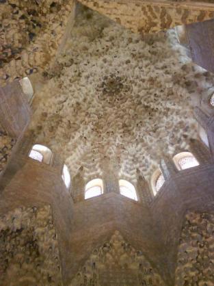 cúpula de la sala forma una estrella de ocho puntas realizada en mocárabes simulando estalactitas y que representan a las ocho