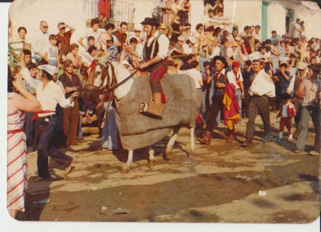 Tienes buena memoria pero el primera espada era mi compadre Lorenzo, melóan contado asi yo era todavia muy pequeña, pero la foto es buenisima cuando atenido el pueblo un picador tan autentico y ese paseillo que notiene nicomparacion con la Maestranza. Violeta, si que la he visto, y me quiero recordar de que esa imagen la vi en directo, el Maximo de picador y tu Padre de primer espada y figura del toreo, valla cachondeo, y otro año se metio Maximo en un tabaque de esparto y tambien hizo un chow bueno. De la gente del publico, quiero conocer a alguien, pero no me aventuro a decir nombres porque no se distinguen muy bien.