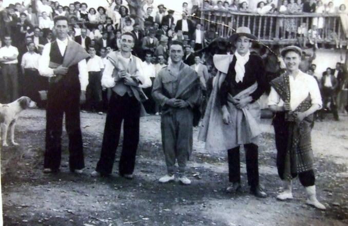 Hola aqui cuelgo esta Foto que me acaba de proporcionar, Antonio Romero "el muerto", desde luego una pieza de colecionista, foto fechada en las Fiestas del año 1948, en ella se pueden ver de derecha a izquierda a:
