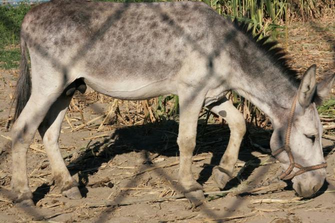 Burro tras la valla,