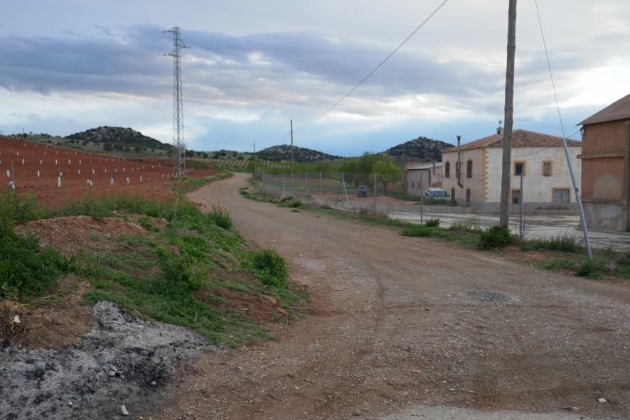 La pista que da acceso a los campos,