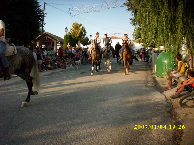 El caballo cada año se está integrando mas en la fiesta, son mas los jinetes y amazonas que de los pueblos cercanos acuden para mostrarnos sus mejores galas, sus monturas y sus habilidades. La presencia del caballo atrae a muchisimo público, pués creo que es por no poder verlos durante todo el año, estos bellos animales aportan a la fiesta un colorido y una vistosidad que gusta a grandes y a pequeños.
