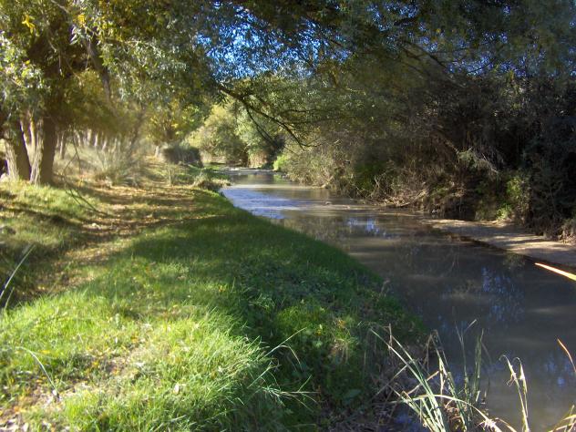 Imagen del río Velillos junto a la Alameda de Antonio, debajo de la presa del Molinillo, en tierras del Cortijo del Baldío. Lugar emblemático y paradisíaco en otros tiempos, donde los niños nos bañábamos y jugábamos en el río para sobrellevar mejor las tórridas calores del verano. Se puede apreciar un buen cauce y una espesa vegetación. Aquí en esta mismo lugar era frecuente la existencia de cangrejos, truchas y otras especies de agua dulce, hasta que se fueron contaminando con vertidos de almazaras y productos químicos y fueron extinguiéndose la vida en los mismos, eliminándose muchas fuentes que en las orillas de los ríos y barrancos suministraban el líquido elemento, a los labradores de la zona.