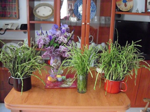 Refranillo: Huerto sin agua, casa sin tejado, mujer sin amor y el marido descuidado, todo es malo. Sobre la mesa hay tres manojos de Esparragos trigueros de este año, también hay un ramo de flores, al verlo me recuerdo de la historieta siguiente: Durante la Edad Media, las prostitutas ejercían su oficio en su casa.