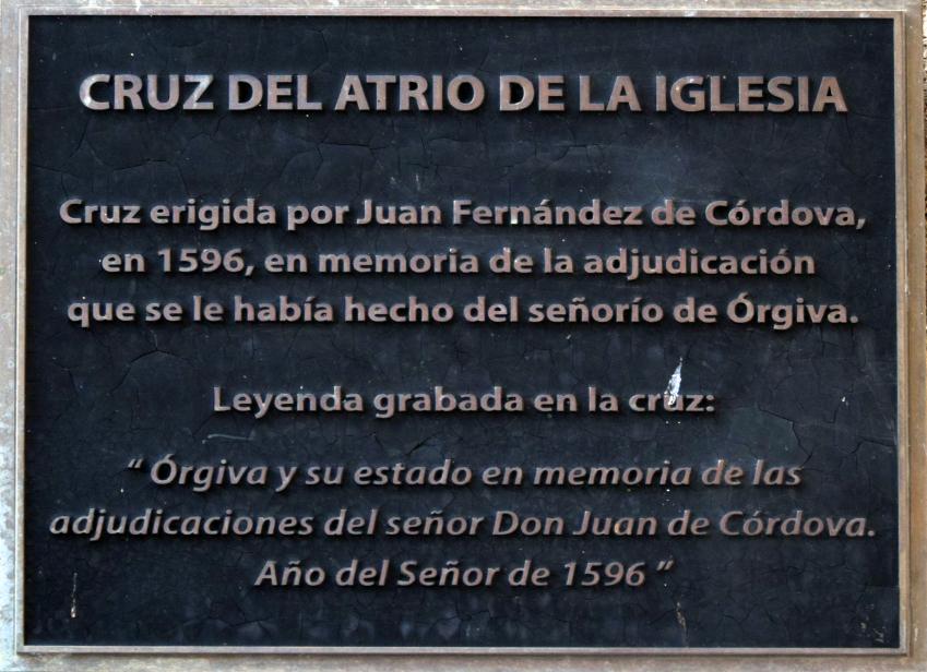 Placa recordatorio con leyenda grabada en la Cruz del Atrio,