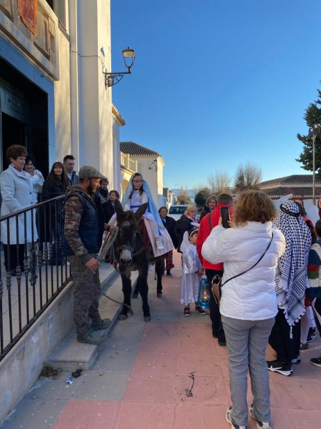 Los niños representando a José y María y los pastorcillos, y acompañados del