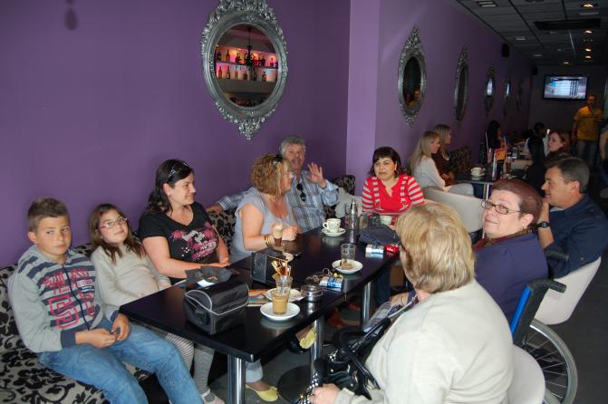 los dos hijos de esther, esther, pepi y su marido, toñi, pepepaco, sensi,