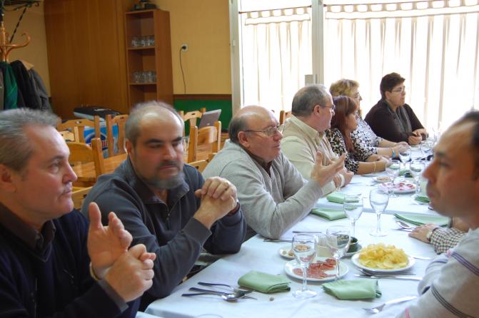 El anciano es un hombre que ya ha comido y observa cómo comen los demás.