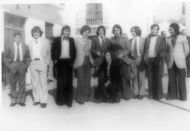 Hola Paco, Mira estos son todos los quintos de los años setenta finales,,, Bueno yo estoy seguro que alguno te suena, si no es así pues ya te iremos informando.. Saludos Foreros... Bueno con esta foto me despido un saludo a todos, y espero que alguno de mis quintos me diga el año exacto, no lo recuerdo muy bien, sera la edad, pero eramos muy jóvenes, 18,0 19, años, ¿O quizas menos? Bueno todavia lo somos "Jóvenes y mas sabios por los golpes que la vida nos da,,,,,,,, un abrazo a todos, Hola Juan A. Yo recuerdo lo de la burra y la escupidera con el chorizo y la