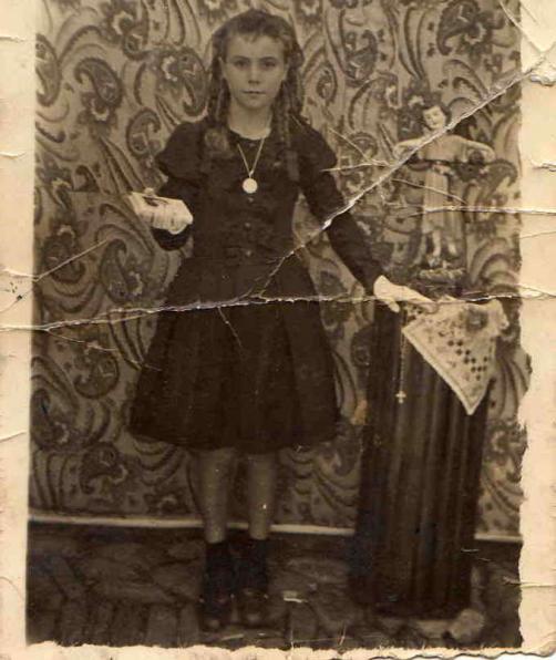 pues imagina, todas las niñas de blanco y ella de negro.. pero siempre fue tan bella ¡ cuanto lo siento Fefilla, cuanto lo siento, me é llevado un pellisco en el pecho si ya hos he dado las buenas noches tres veces feliznoche ale Fefi, se quedó sin padre siendo niña, ésta foto es del día de su primera comunión, por eso va vestida de negro, cosas de la época. Fefilla, ya te vas?