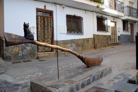 Gato negro sobre la escoba,