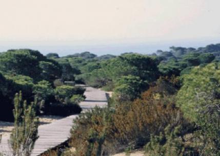 La tarima de la foto, está situada en la cuesta Maneli. Esta cuesta no es mas que una gran duna y esa tarima es un camino que comienza en el aparcamiento situado a la vera de la carretera Mazagon-Matalascañas y atraviesa la duna hasta la playa. Bonita zona para quien le guste las playas virgenes. Esto está situado en zona protegida del entorno de Doñana.