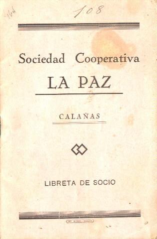 Cartilla de la Sociedad Cooperativa La Paz años 30,